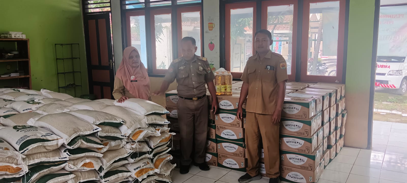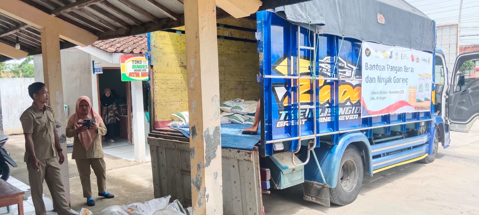 Senin, 8 Desember 2025. Monitoring dan Pemantauan oleh Kasi Trantibum dan Kasi Kesra Kecamatan dalam kegiatan Dropping Beras dan Minyak Goreng dari Dinas Ketahanan Pangan Daerah Kabupaten Grobogan di Wilayah Kecamatan Tawangharjo