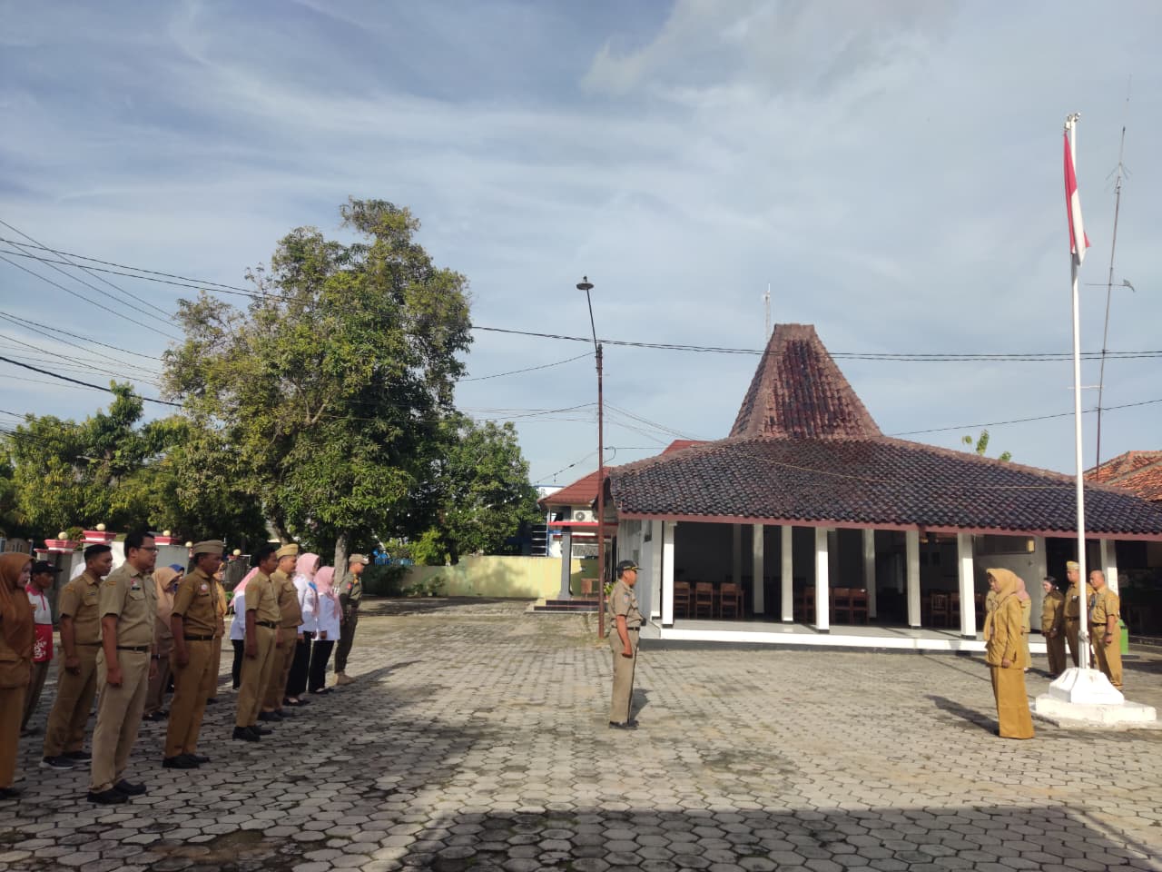 Senin, 29 Desember 2025. Apel pagi Karyawan-Karyawati Sekretariat dan Dinas Instansi Lingkungan Kantor Kecamatan Tawangharjo yang dipimpin oleh Ibu Sekcam Sri Sugiwati, S.P., M.M. di Halaman Kecamatan Tawangharjo