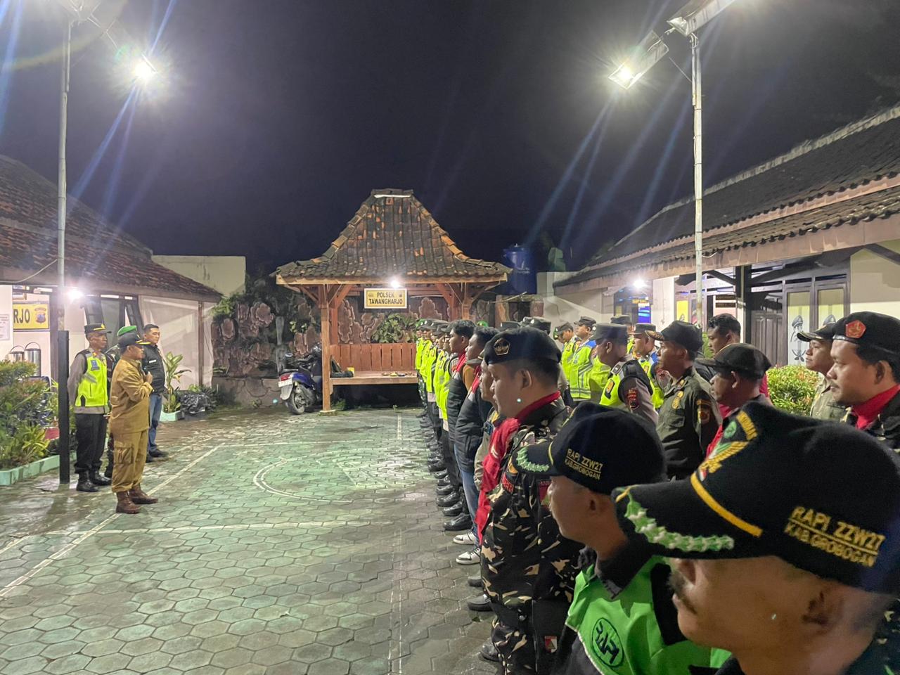 Rabu, 31 Desember 2025. Pelaksanaan Apel bersama Forkopimcam sebelum memulai kegiatan patroli dalam rangka pengamanan pergantian Tahun Baru 2026 di Markas Polsek Tawangharjo Details Category: Uncategorised Published: Friday, 09 January 2026 13:30 Written by admin tawangharjo Hits: 50 Prev Next