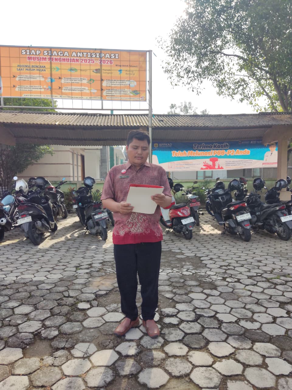 Kamis, 15 Januari 2026. Apel pagi Karyawan-Karyawati Sekretariat dan Dinas Instansi Lingkungan Kantor Kecamatan Tawangharjo di Halaman Kecamatan Tawangharjo