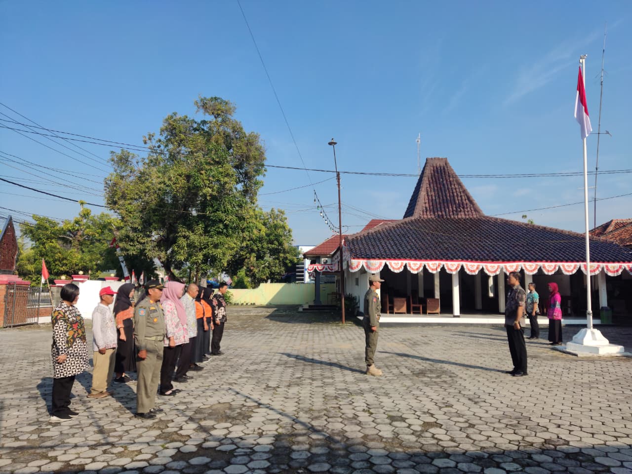 Senin, 25 Agustus 2025. Apel pagi Karyawan-Karyawati Sekretariat dan Dinas Instansi Lingkungan Kantor Kecamatan Tawangharjo yang dipimpin oleh Camat Tawangarjo Bapak Joko Supriyanto, S. S.T.P., M.H. di Halaman Kecamatan Tawangharjo