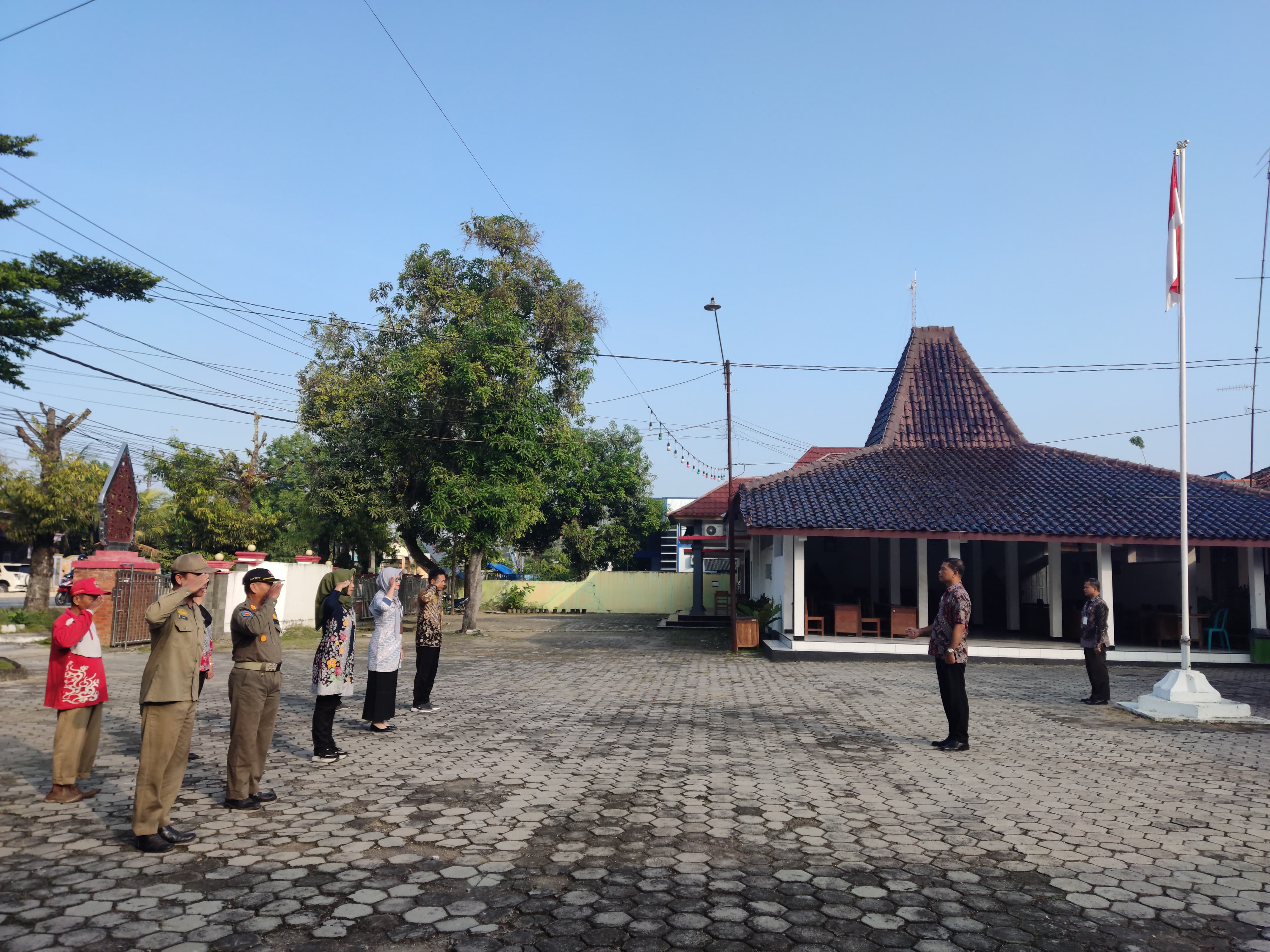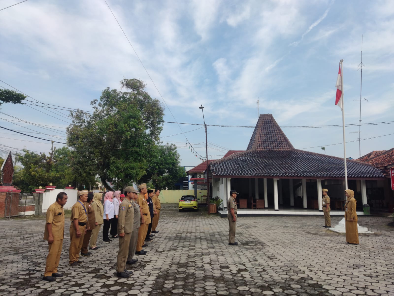 Senin, 16 Juni 2025. Apel pagi Karyawan-Karyawati Sekretariat dan Dinas Instansi Lingkungan Kantor Kecamatan Tawangharjo yang dipimpin oleh Ibu Sekcam Sri Sugiwati, S.P., M.M. di Halaman Kantor Kecamatan Tawangharjo