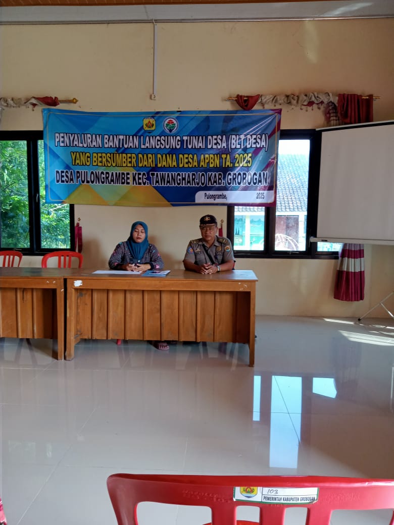 Kamis, 5 Juni 2025. Pemantauan pelaksanaan kegiatan penyaluran BLT DD Bulan Juni 2025 oleh Petugas BPR BKK Purwodadi (Perseroda) kantor cabang Tawangharjo di Pendopo Kantor Balai Desa Pulongrambe