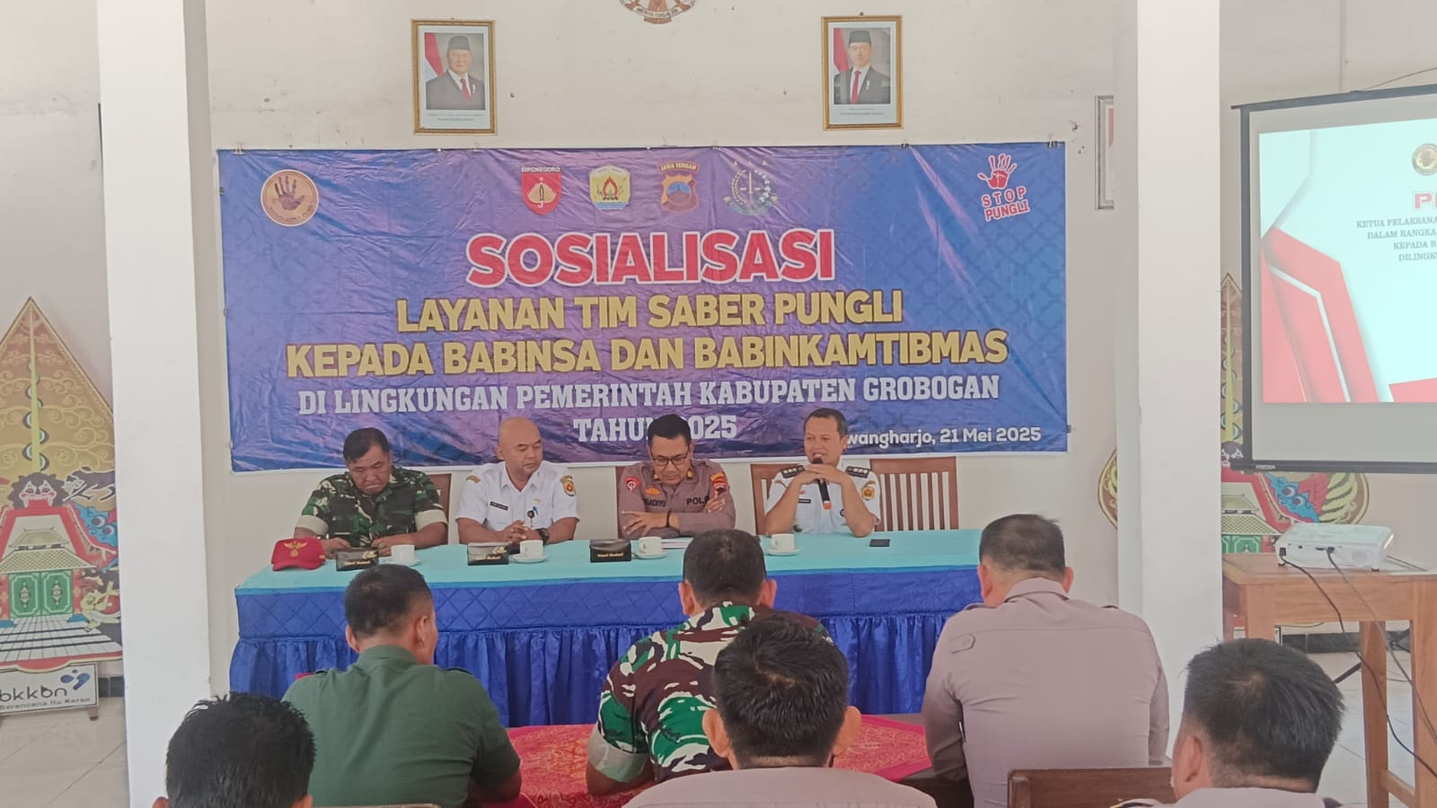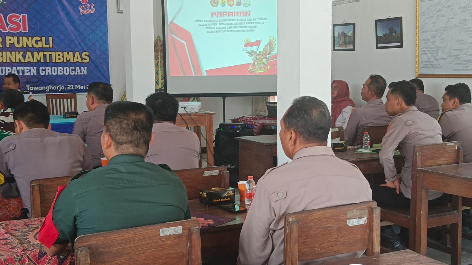 Jum'at, 23 Mei 2025. Pemantauan pelaksanaan kegiatan penyaluran BLT DD Bulan Mei 2025 oleh Petugas BPR BKK Purwodadi (Perseroda) cabang Tawangharjo di Aula Balai Desa Plosorejo