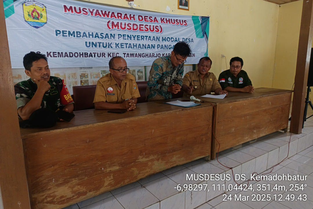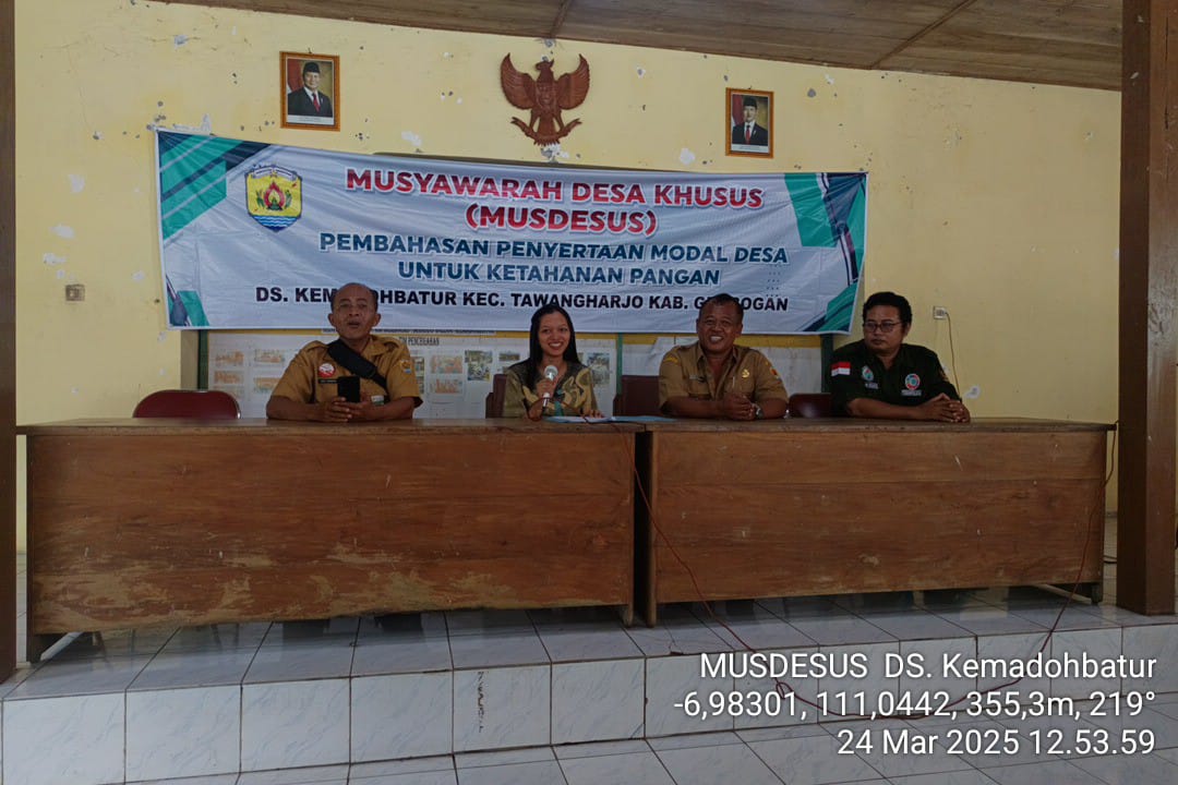 Senin, 24 Maret 2025. Musyawarah Desa Khusus (MUSDESUS) Pembahasan Penyertaan Modal Desa untuk Ketahanan Pangan Desa Kemadohbatur di Pendopo Balai Desa Kemadohbatur