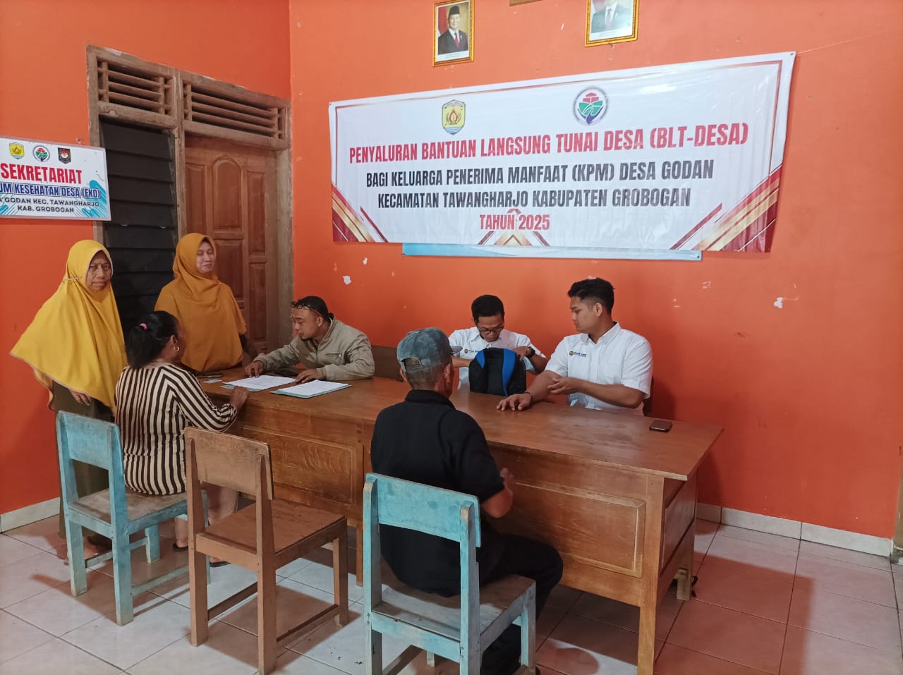 Senin, 10 Maret 2025. Pemantauan pelaksanaan kegiatan penyaluran BLT DD Bulan Januari - Maret 2025 oleh Petugas BPR BKK Purwodadi (Perseroda) cabang Tawangharjo di Pendopo Kantor Balai Desa Tawangharjo