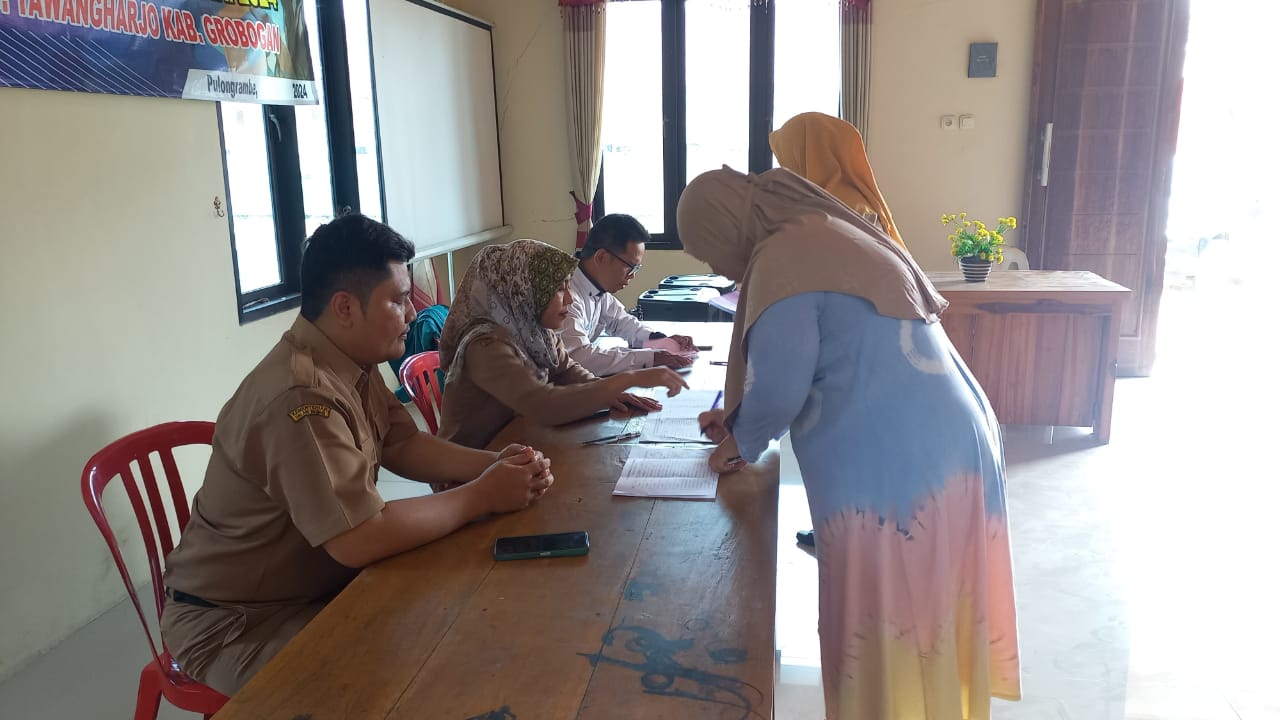 Selasa, 12 November 2024. Pemantauan pelaksanaan kegiatan penyaluran BLT DD Bulan November 2024 oleh Petugas BPR BKK Purwodadi (Perseroda) cabang Tawangharjo di Pendopo Kantor Balai Desa Tarub