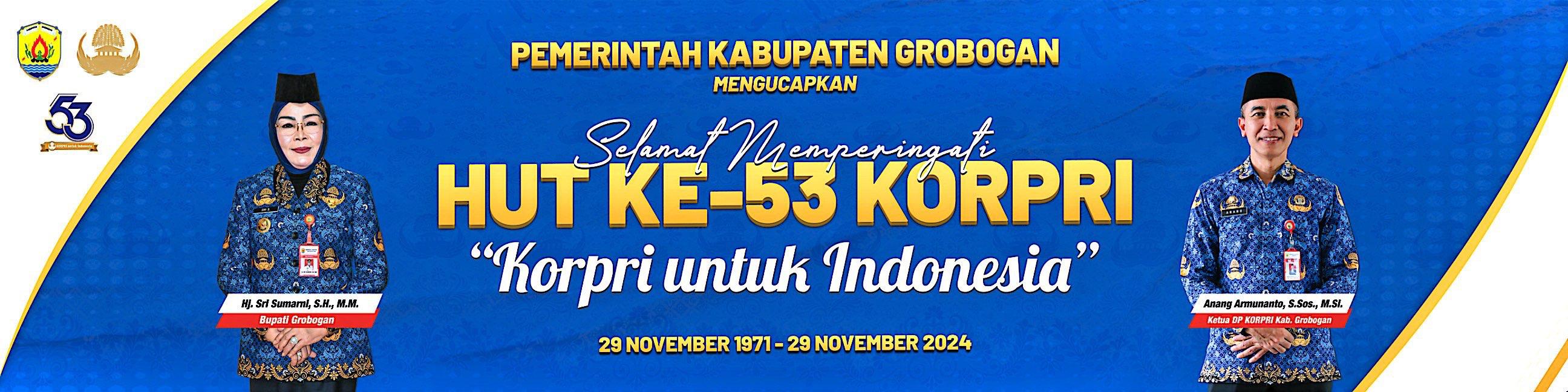 Selamat memperingati HUT ke-53 KORPRI Tahun 2024 dengan Tema "KORPRI UNTUK INDONESIA" Details Category: Uncategorised Published: Wednesday, 06 November 2024 01:44 Written by admin tawangharjo Hits: 293
