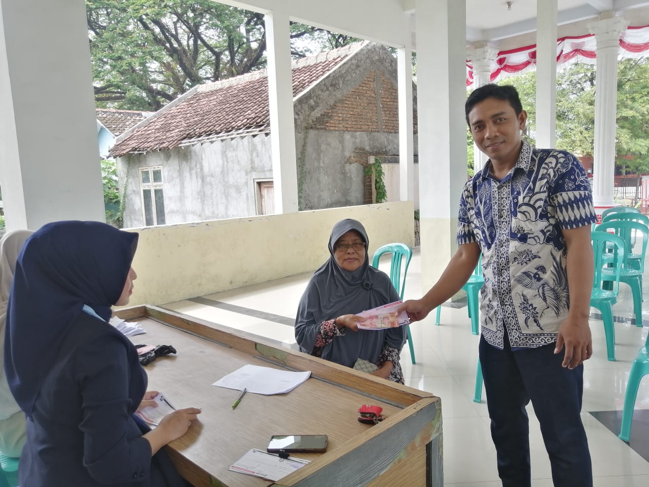 Selasa, 10 September 2024. Pemantauan pelaksanaan kegiatan penyaluran BLT DD Bulan September 2024 oleh Petugas BPR BKK Purwodadi (Perseroda) cabang Tawangharjo di Pendopo Kantor Balai Desa Pulongrambe