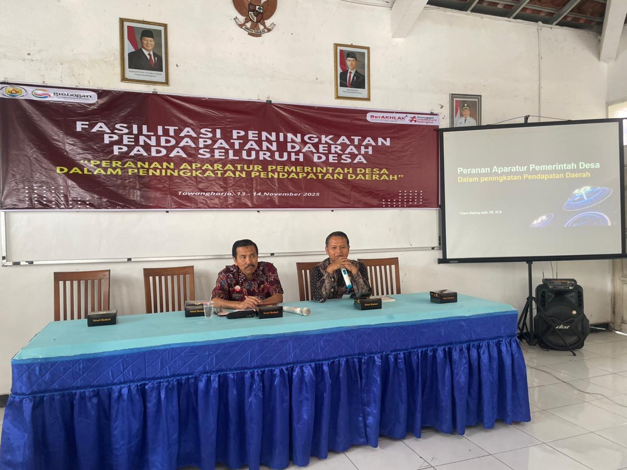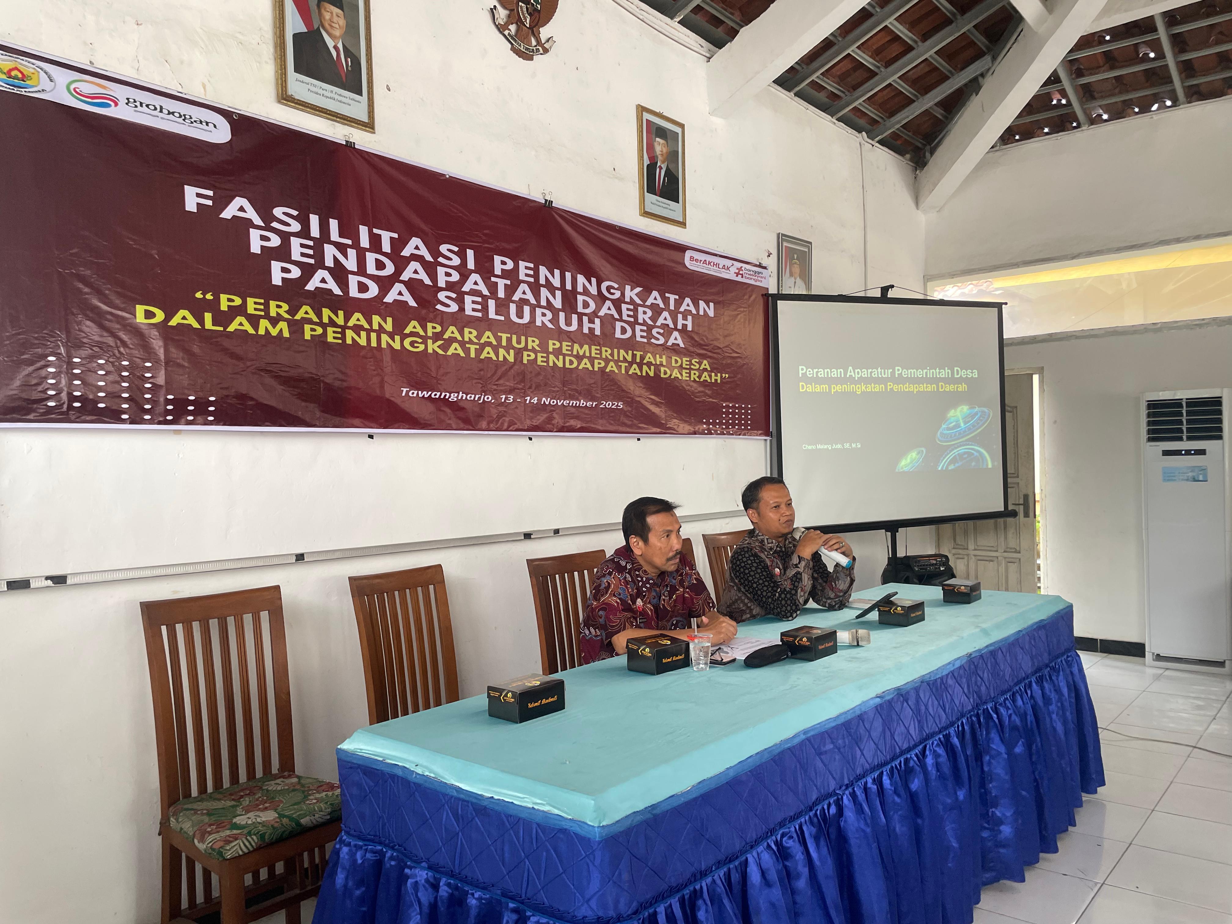 Jum'at, 14 November 2025. Fasilitasi Peningkatan Pendapatan Daerah pada Seluruh Desa dengan tema: “Peranan Aparatur Pemerintah Desa dalam Peningkatan Pendapatan Daerah” di Pendopo Kantor Kecamatan Tawangharjo