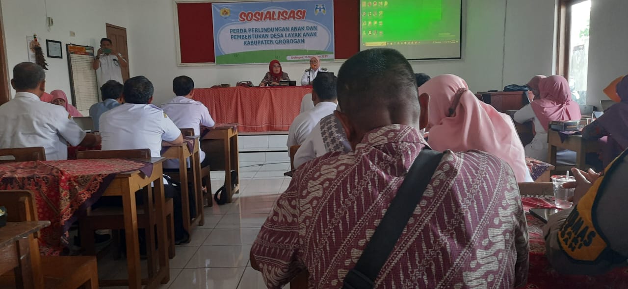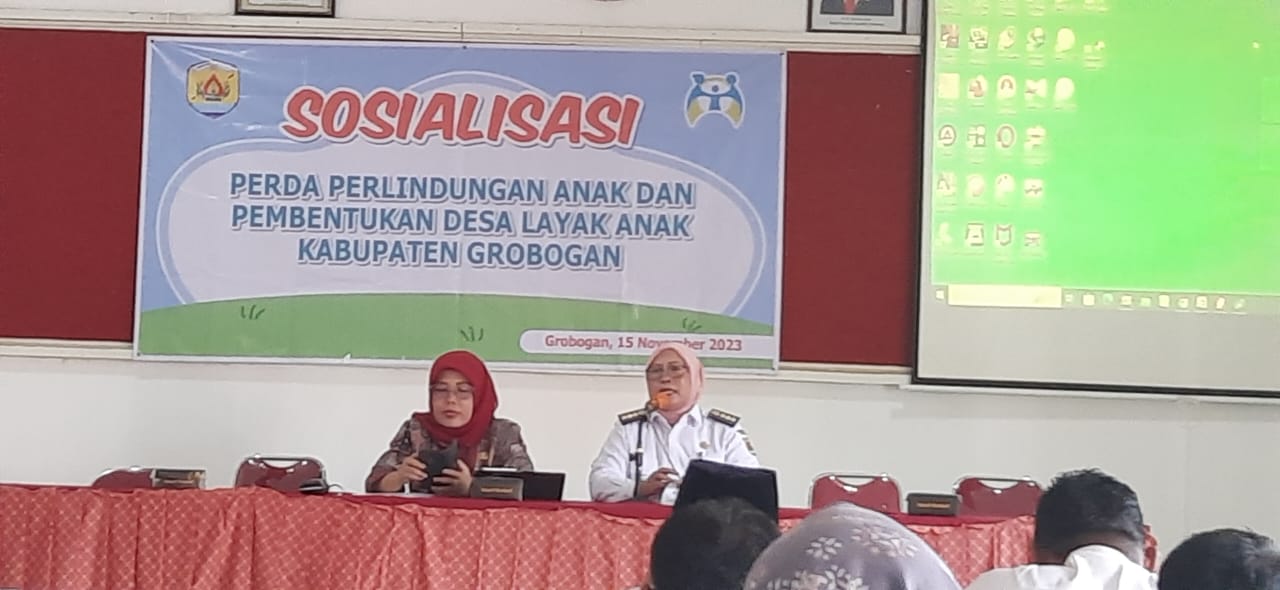 Sosialisasi Perda Perlindungan Anak dan Pembentukan Desa Layak Anak Kab. Grobogan, Rabu 15 November 2023 di Aula Korwilcam Pendidikan Kec. Grobogan