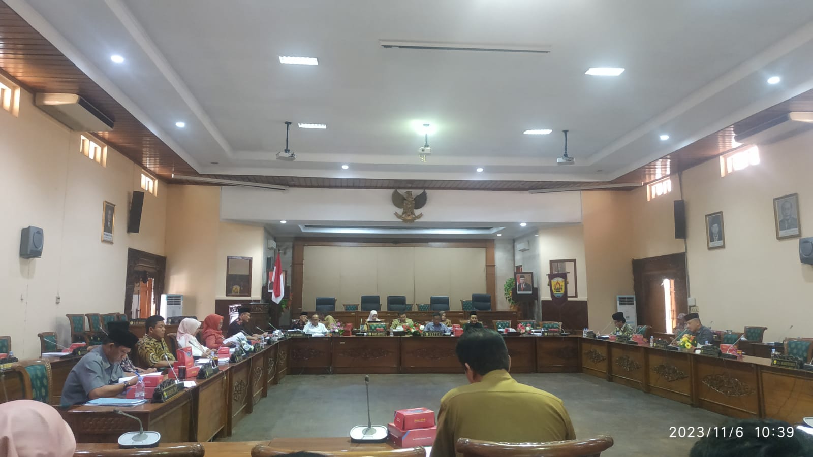 Rapat Kerja Badan Anggaran DPRD Kab.Grobogan terkait Pembicaraan Tingkat I Tahap Keempat (Pembahasan dan Penyempurnaan atas Raperda tentang APBD TA 2024 sekaligus Penyelarasan hasil pembahasan atas Raperda tentang APBD TA 2024) di Ruang Rapat Paripurna D Details Category: Uncategorised Published: Thursday, 09 November 2023 10:29 Written by admin tawangharjo Hits: 431