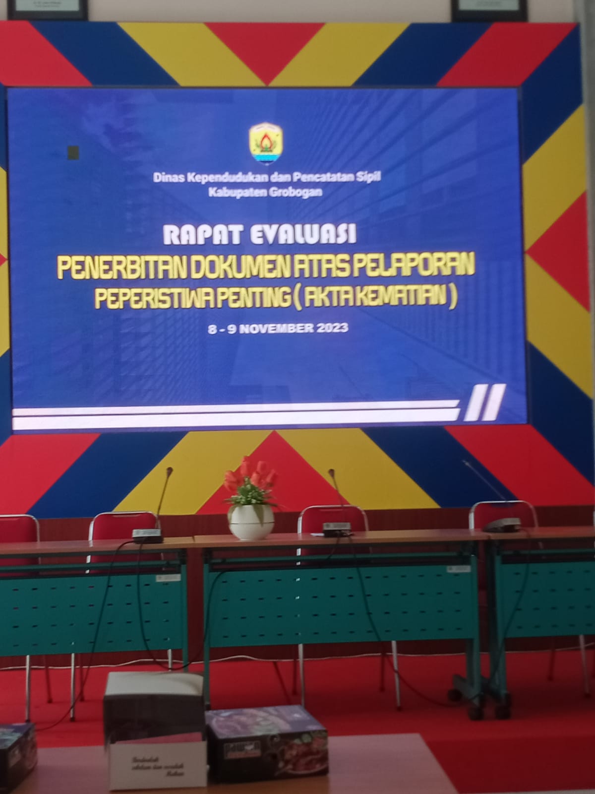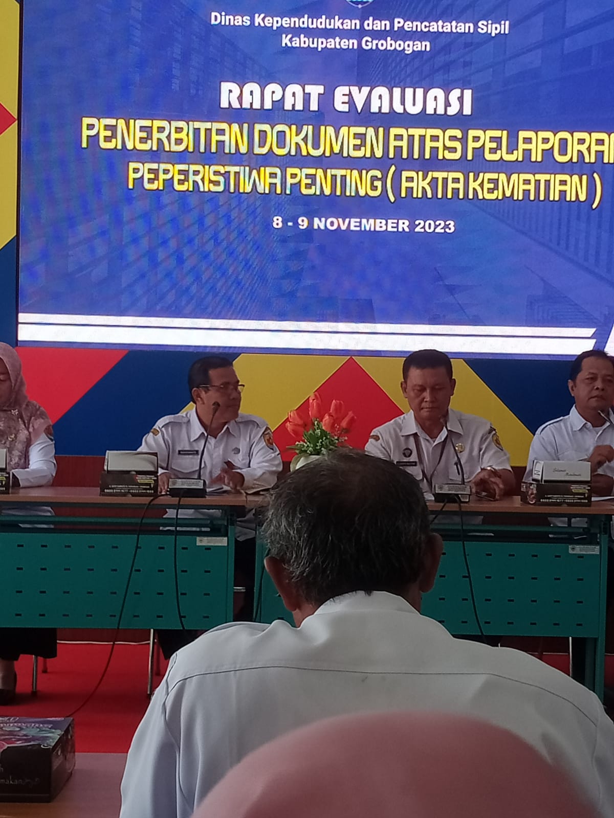 Rapat Evaluasi Penerbitan Dokumen atas Pelaporan Peristiwa Penting (Akta Kematian ) di aula Dispendukcapil Kab. Grobogan, Rabu 8 Nopember 2023 Details Category: Uncategorised Published: Thursday, 09 November 2023 11:15 Written by admin tawangharjo Hits: 399