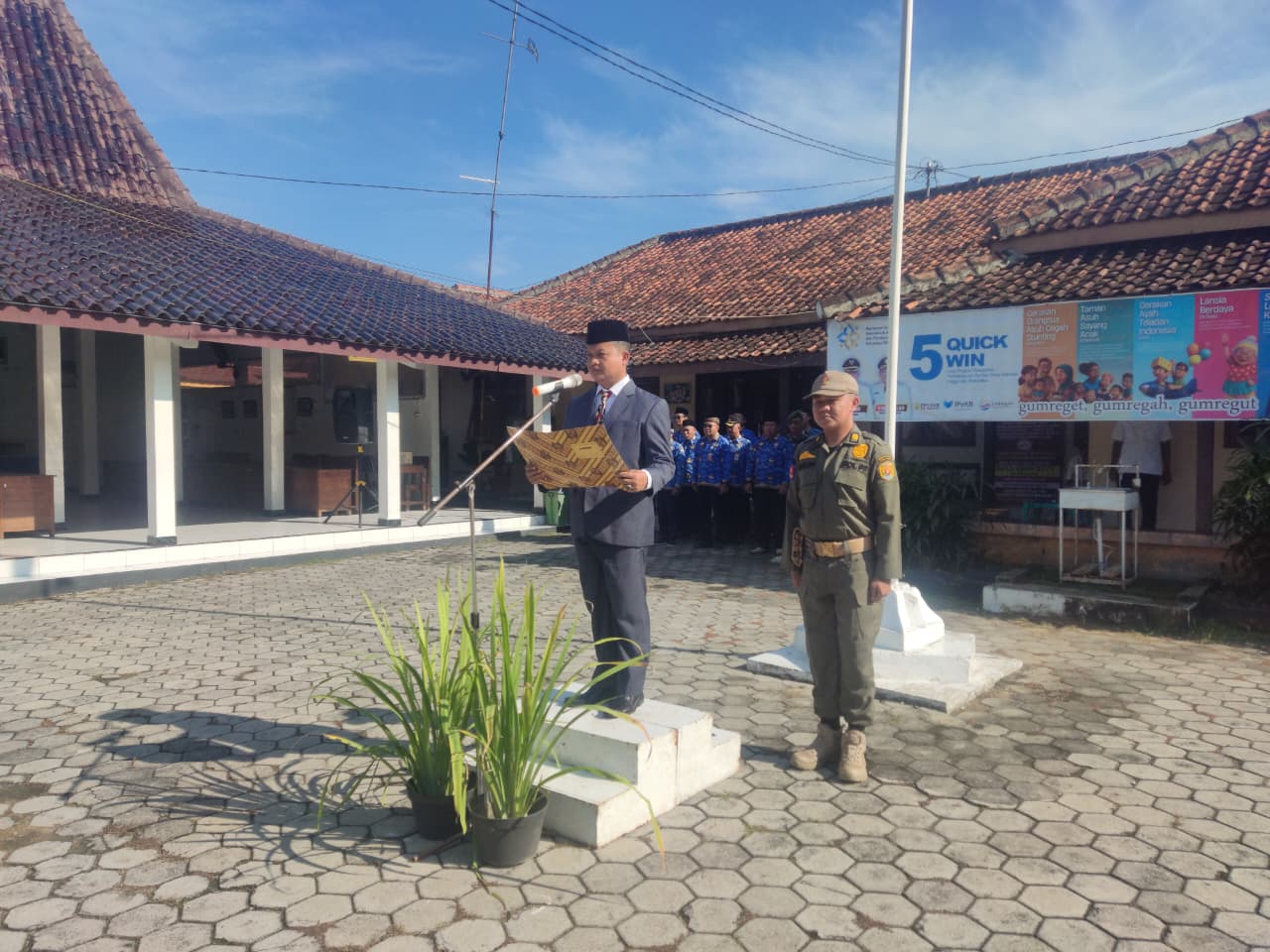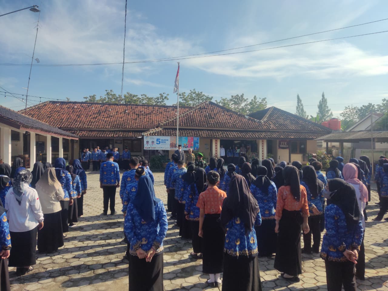 Kamis, 2 Oktober 2025. Apel pagi Karyawan-Karyawati Sekretariat dan Dinas Instansi Lingkungan Kantor Kecamatan Tawangharjo di Halaman Kecamatan Tawangharjo